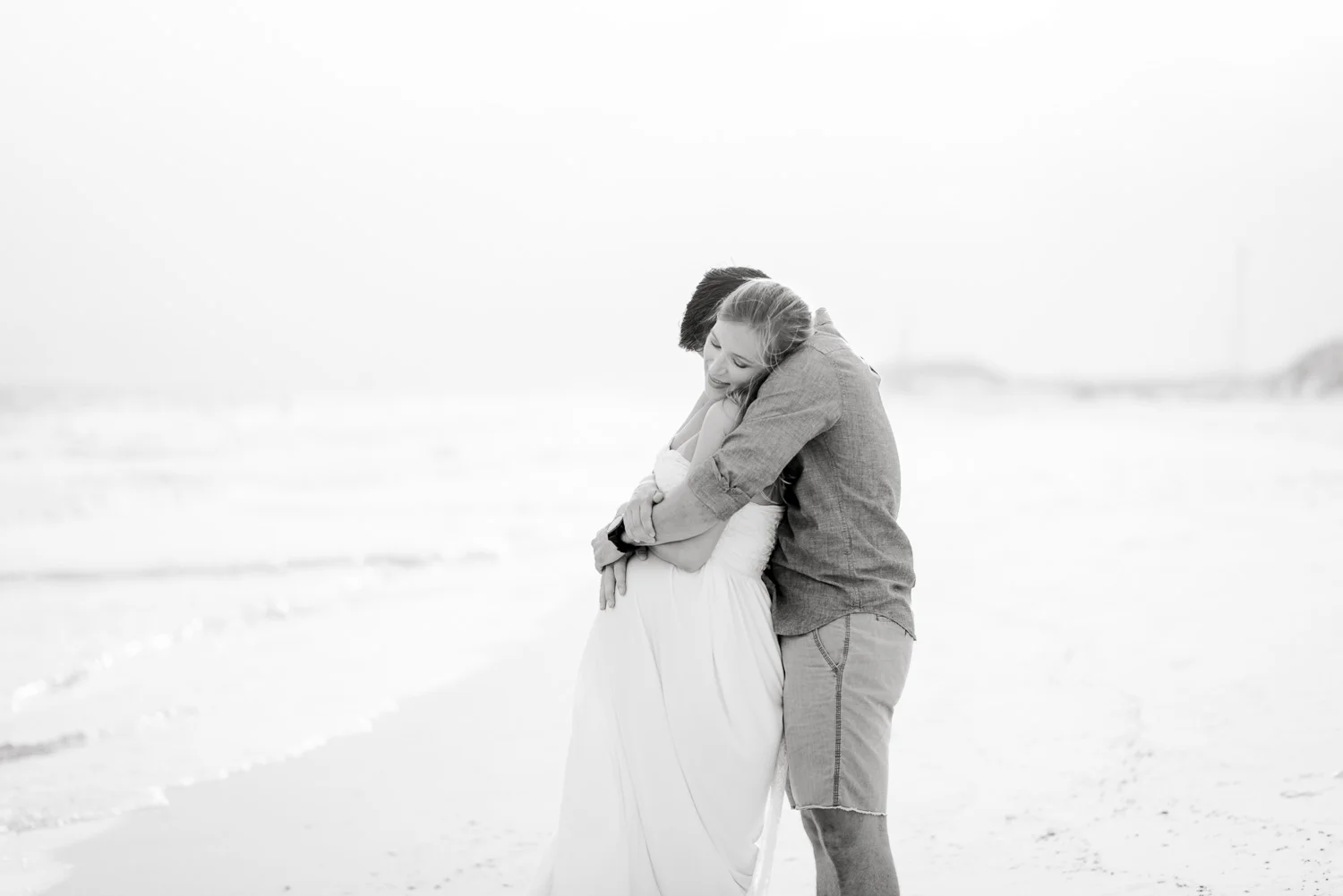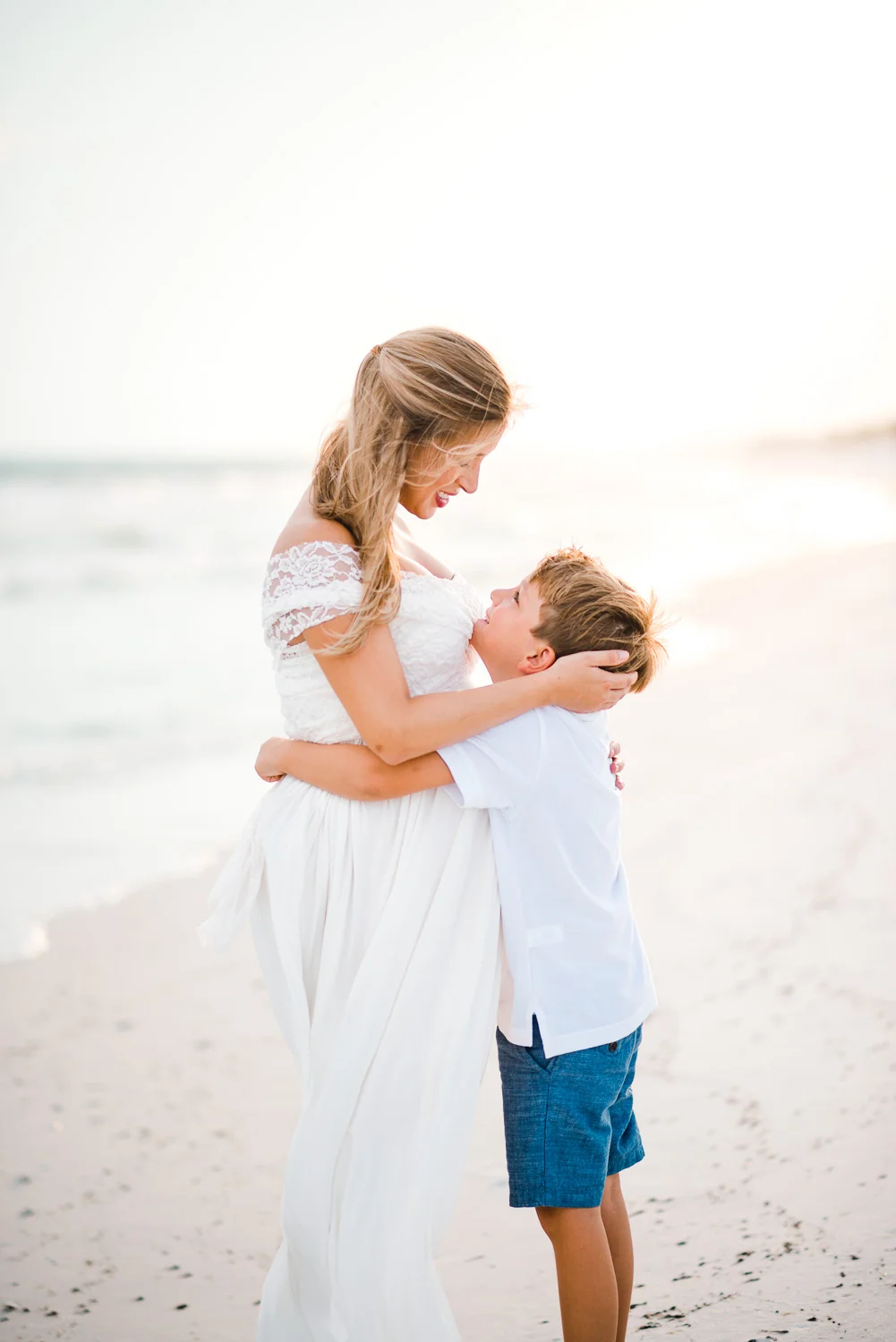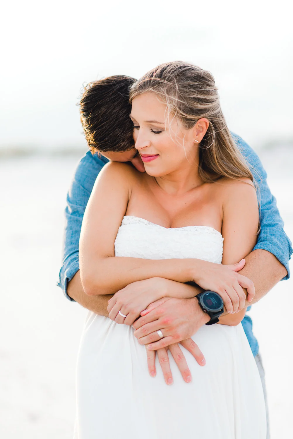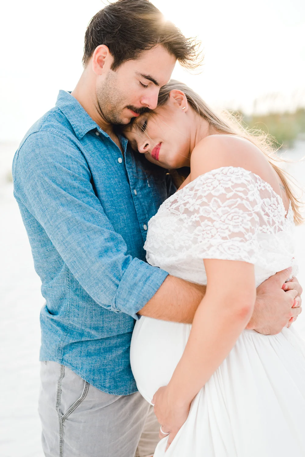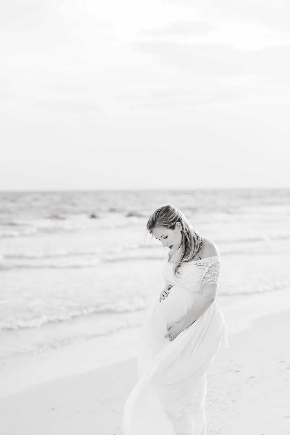 While preparing for her maternity session in Fort Walton Beach, Stephanie asked me if I thought it would be ok to wear white/off white on the beach. Would it blend into the sand too much? It may surprise you to know that it doesn’t. A monochromatic color palette actually works exceptionally well and is extremely flattering to skin tones. When working with monotones, it is a good idea to incorporate textures such as lace, knits, linen. Textures add another layer of visual interest to an image without competing or distracting from the subject. Stephanie chose a dress with a lace wrapped bodice that I think works perfectly.