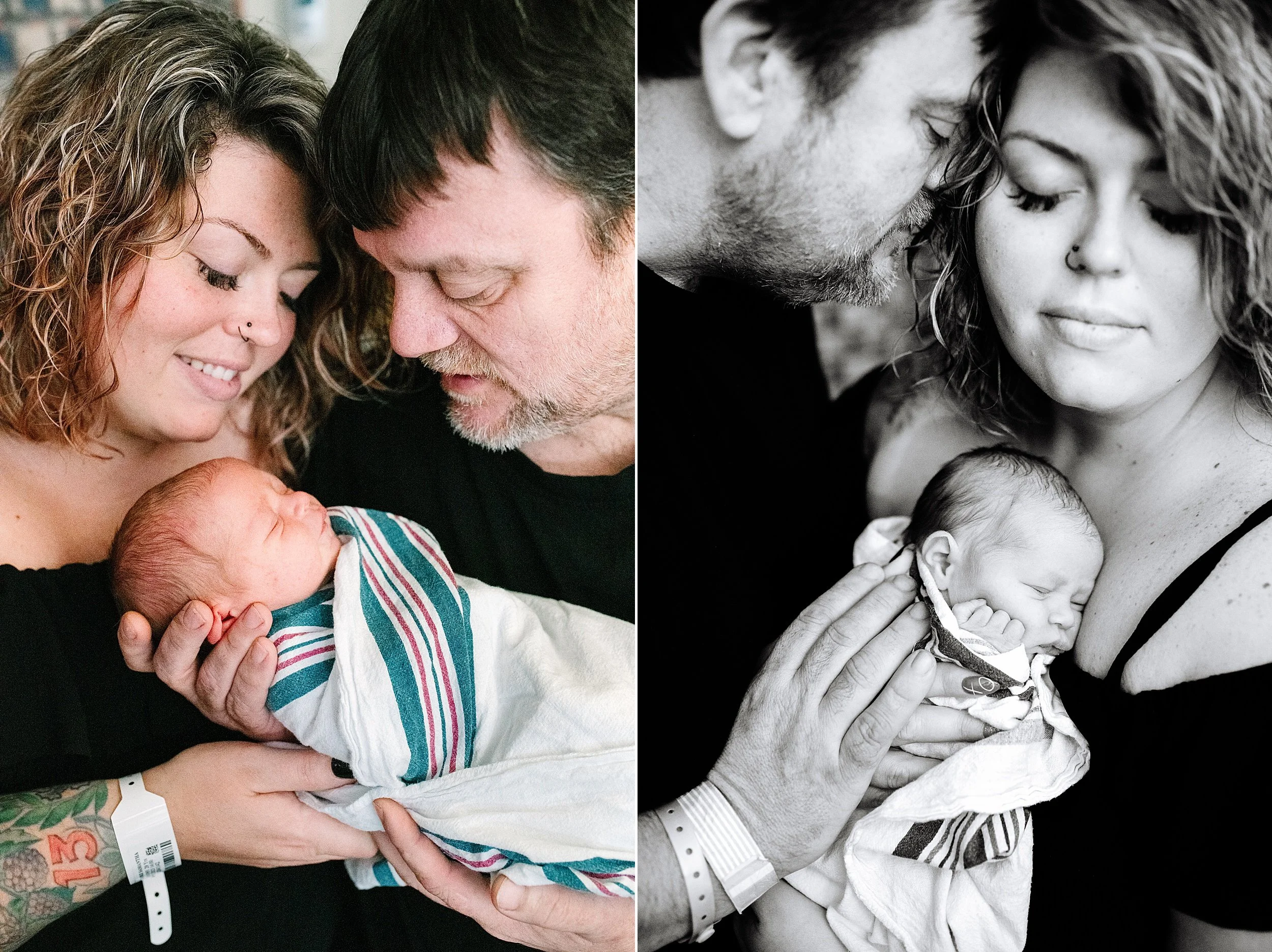 Capture the raw emotions of mom and dad holding their baby for the first time. Include family portraits, such as grandparents meeting the baby or siblings bonding with their new brother or sister.Relaxed, Soft Poses