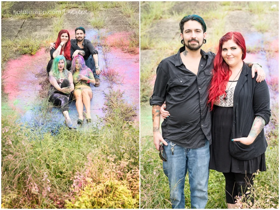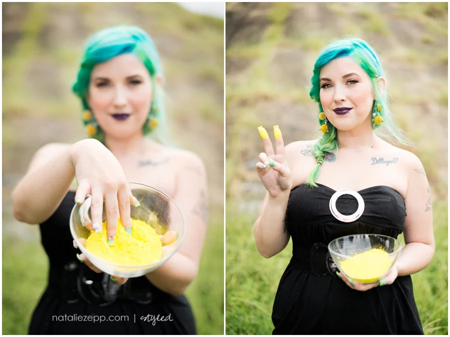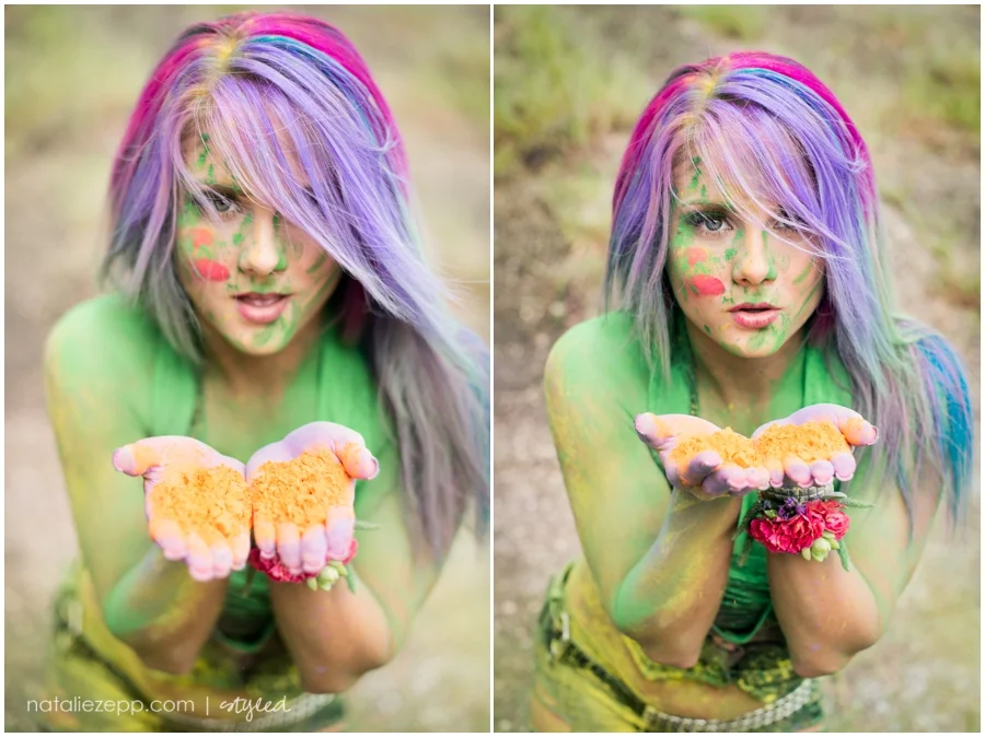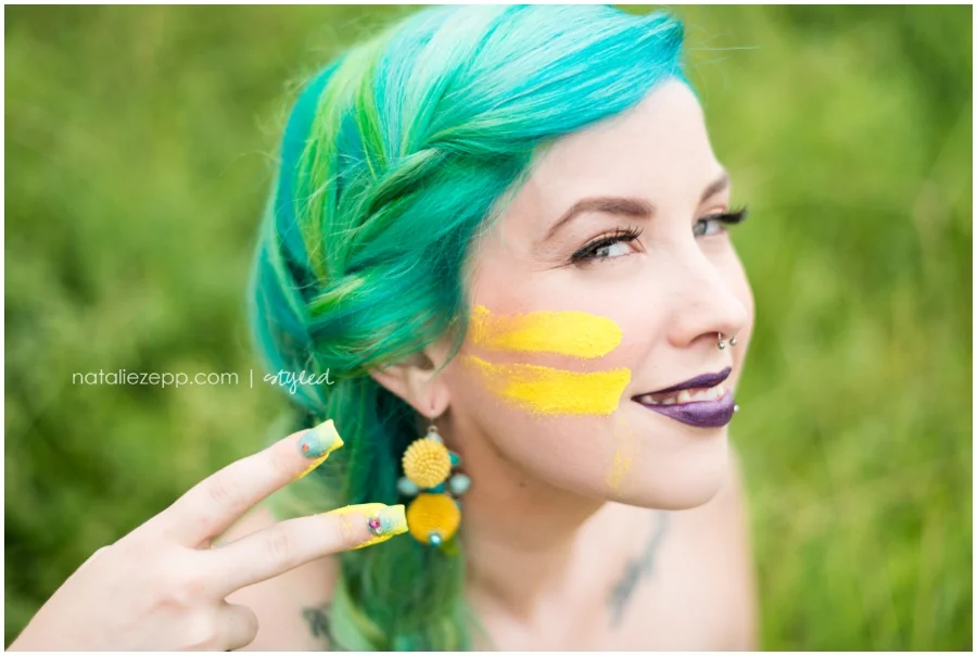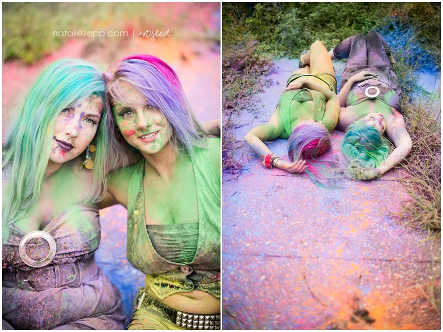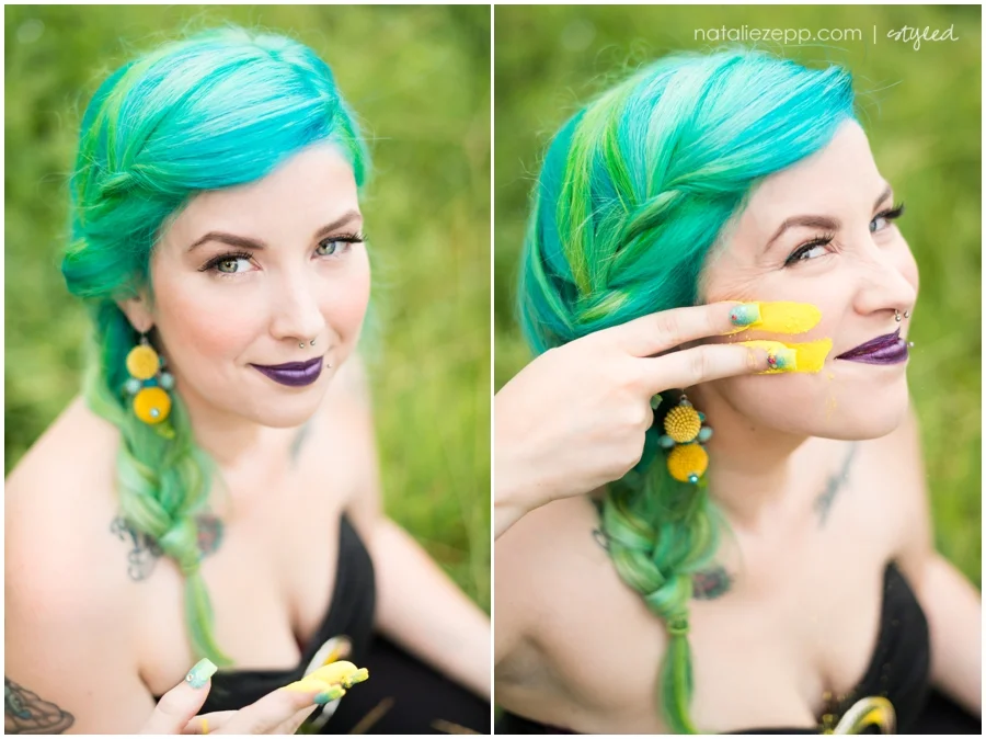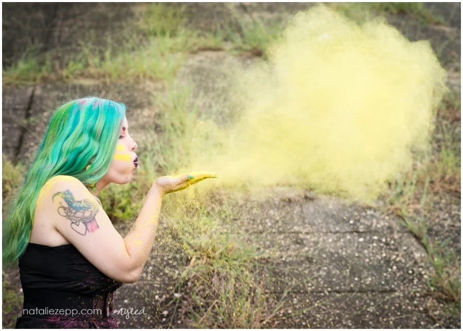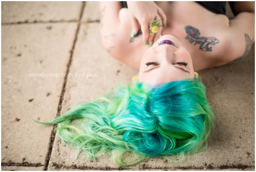 I feel incredibly lucky to know some of the most talented people in my city. I'm even luckier that they consider me talented enough to photograph their work. Last year Pensacola artist, Rebecca Taylor and her sweetheart Keith Landgraff opened the hottest salon in town, Vivid. Artistic Hair Design. And when I saw the incredible hair masterpieces they were turning out, of course I wanted to photograph them…like ALL of them. If I could just live there with my camera and shoot all of their daily masterpieces, I absolutely would! Rebecca and I collaborated and came up with the idea for a shoot to really highlight the bold and edgy vibe of the salon. We also enlisted the talents of local make-up artist Kat O'Connor of Kat O'Cosmetic Artistry, and fabulous floral artist Chloe Lawry of Supposey. I must also say a special thanks to my bestie and fellow photog Melissa Wilson of Melissa Wilson Photography for putting aside her camera for most of the shoot to be my assistant and safety net while scaling the steep incline of the overpass we shot under. Our gorgeous models here are Sidni Mickel (green and blue hair) and Tiffany Miller (pink and purple hair). They are total rockstars!